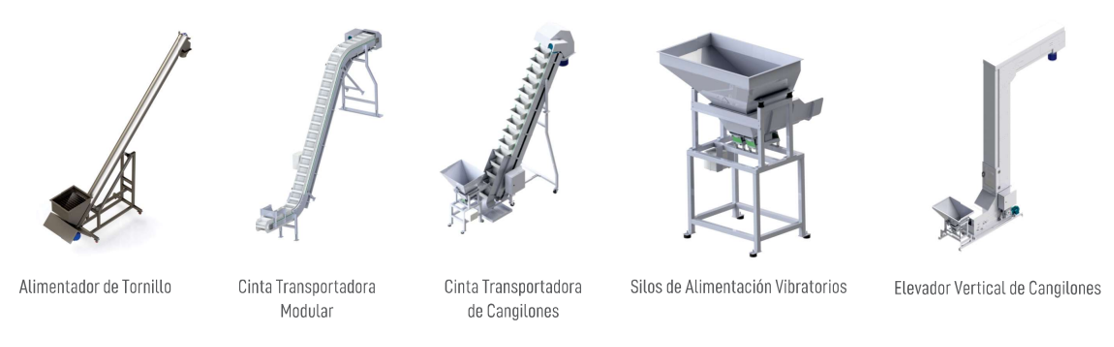 Dosetec fabrica una amplia variedad de equipos para el manejo de su producto. Esta línea incluye transportadores de productos a granel para la alimentación de balanza y envasadoras, así como para mover el producto ya envasado, en paquetes pequeños, sacos grandes o cajas.